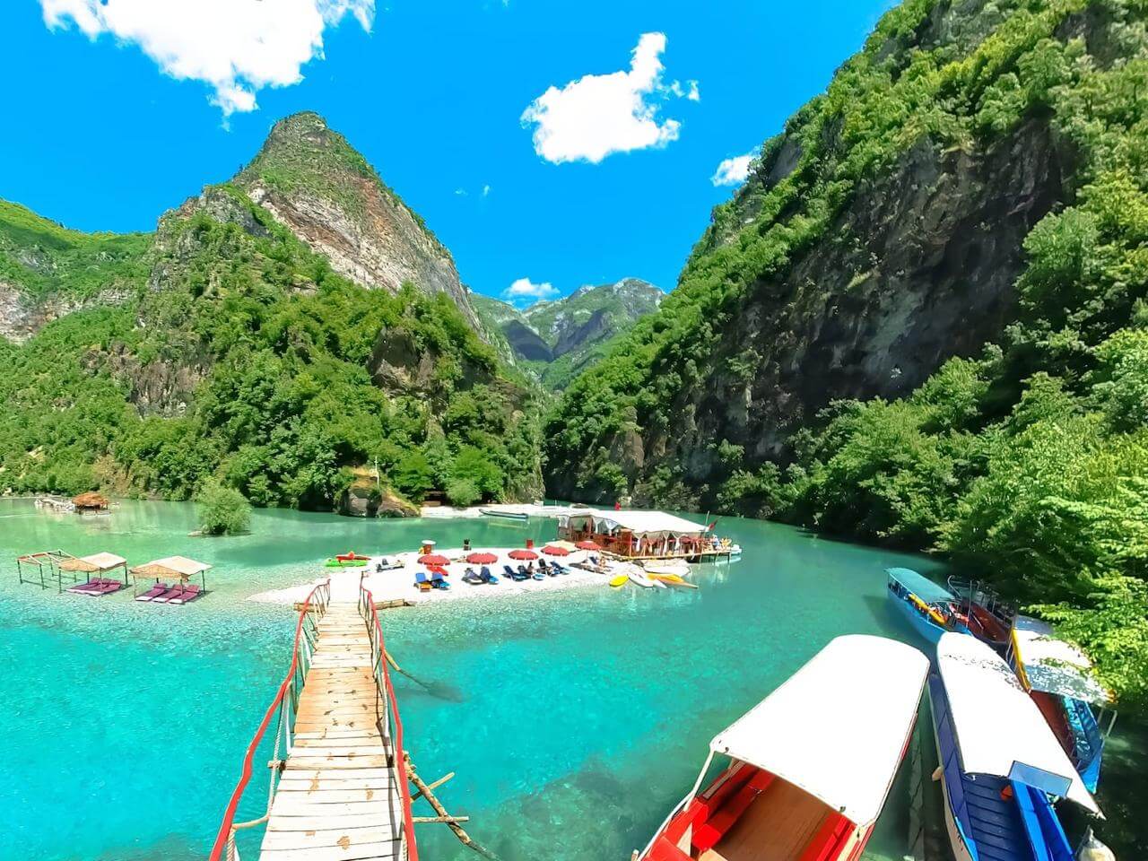 Embarking on a boat tour through Komani Lake and the Shala River offers one of the most breathtaking experiences in Albania. As the boat winds through steep gorges and emerald waters, you’ll be surrounded by towering cliffs and untouched wilderness. The journey continues onto the Shala River, often called the “Albanian Thailand” for its crystal-clear waters and tropical-like scenery. Here, you can swim, relax on riverbank beaches, or enjoy a meal at one of the rustic riverside cafés. This tour combines adventure and tranquility, making it a must-do for nature lovers and explorers alike.